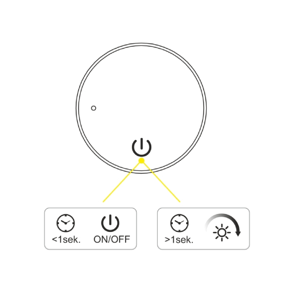 Funkcia 2v1: Krátky dotyk zapne/vypne, podržanie plynule stmieva alebo rozjasňuje.
