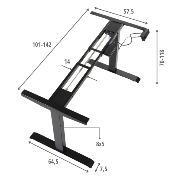 elektrické nastavovanie výšky v rozsahu 70–118 cm pomocou jedného motora