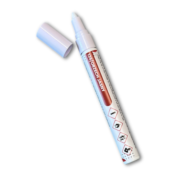 Marker na opravu nábytku od značky Folmag je ideálny pomocník pre jedinečné zakrytie škrabancov, odrenín a malých trhlín na drevených povrchoch, fóliách či laminátoch. Rýchlo schnúci, odolný voči oderu aj vlhkosti, perfektný pre domácnosti, dielne i profesionálov.