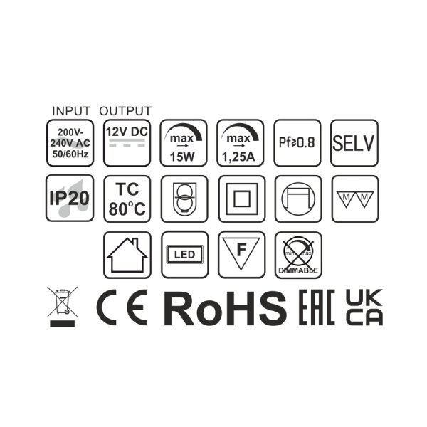 Tento model transformuje sieťové napätie 230V na bezpečné napätie 12V DC, ktoré je štandardom pre väčšinu LED pásov a nábytkových svietidiel. Je ideálnou voľbou pre napájanie kratších úsekov LED pásov alebo bodových LED svietidiel s celkovým príkonom do 15W.