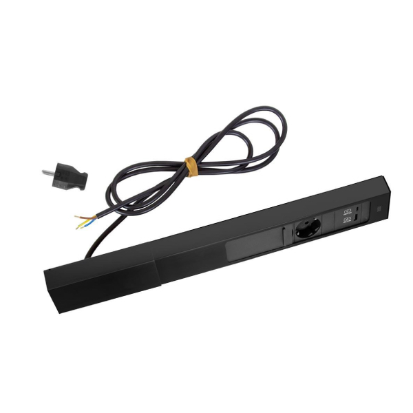 Model Bachmann CASIA 2 – 932.107 je moderná rohová zásuvková lišta v čiernom eloxovanom prevedení (RAL 9005) s dôrazom na dizajn a praktickosť.