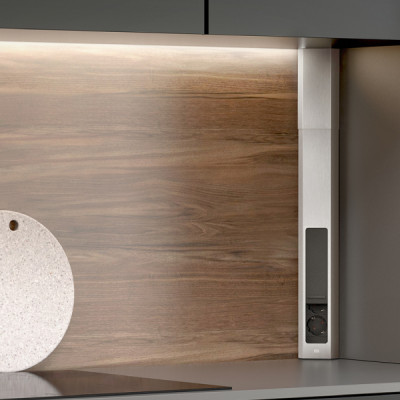 Vybavená je teleskopickým prvkom a posuvným mechanizmom, ktorý umožňuje prispôsobenie rôznym typom kuchýň – s hornými skrinkami aj bez nich.