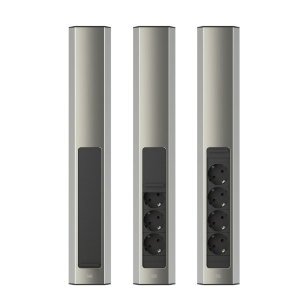 Ponúka štyri sieťové zásuvky v elegantnom, štíhlom kovovom tele s dôrazom na dizajn a funkčnosť.