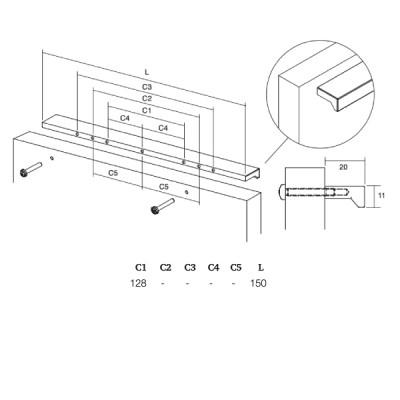 Úchytka ANGLE VIEFE L128 hliník 0077128L04