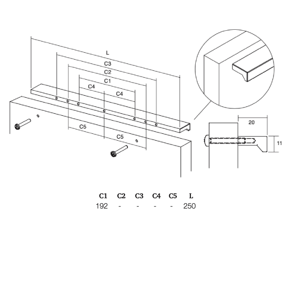 Úchytka ANGLE VIEFE L192 hliník 0077192L04