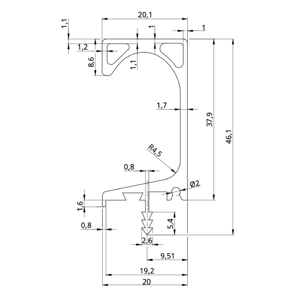 Úchytka PROFIL do hrany 3m "C" UM-932 hliník (UKW-7)