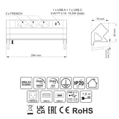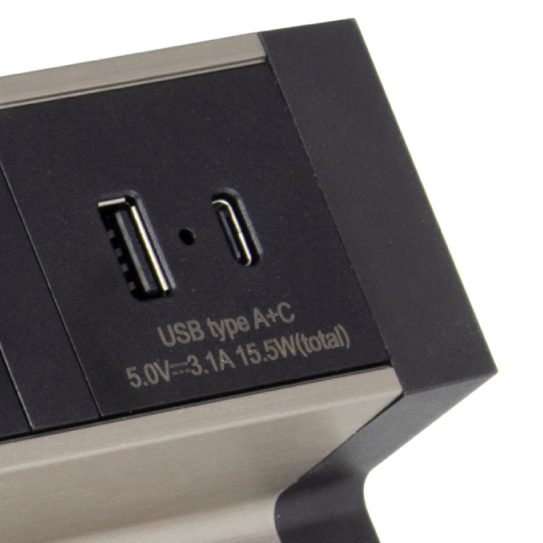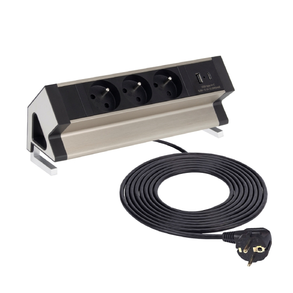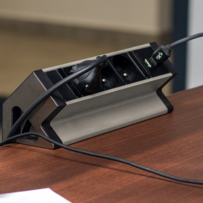 Vysoko praktický vstavaný stolový modul s napájacími zásuvkami a USB portmi, navrhnutý pre kancelárske pracoviská, domácu pracovňu, coworking či konferenčné miestnosti. Tento predlžovač ponúka spoľahlivé napájanie aj nabíjanie zariadení bez neporiadku a káblových spleťí na stole.