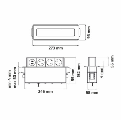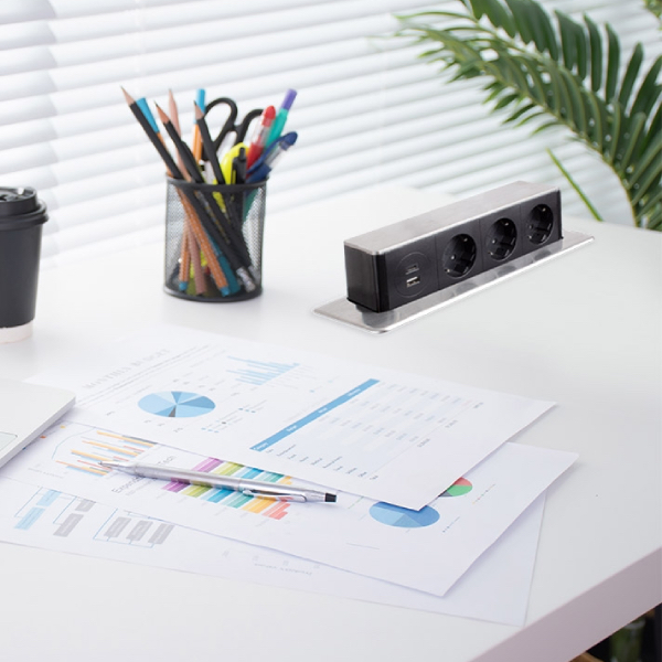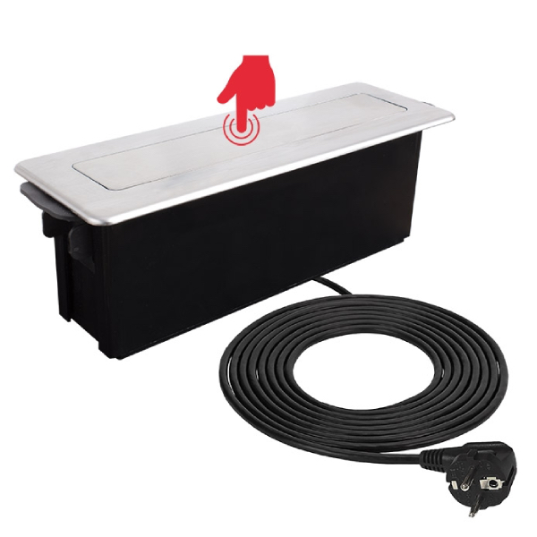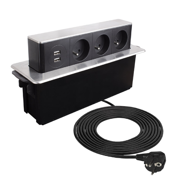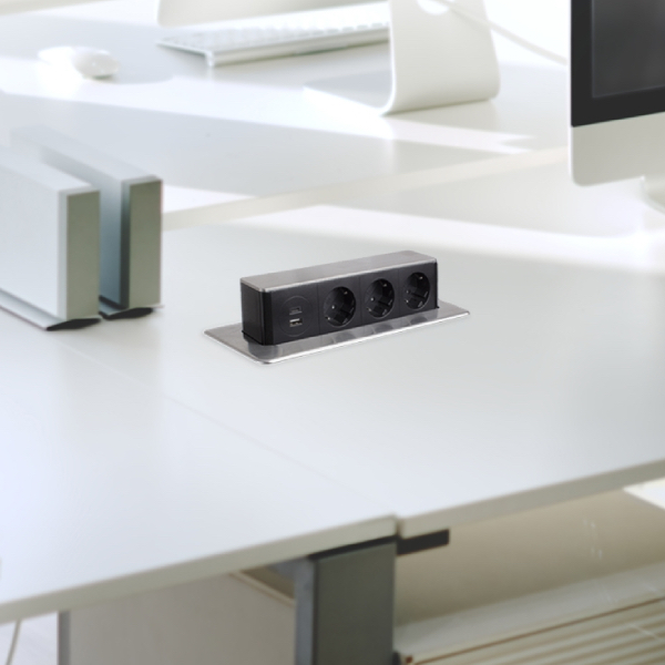 Vstavaný zásuvkový modul, ktorý prináša výkon i funkčnosť priamo do pracovnej plochy bez zbytočných káblov a neporiadku. Vďaka robustnej konštrukcii a modernému dizajnu v odtieni ocele drapanej je ideálny pre kuchyne, kancelárie aj komerčné priestory.