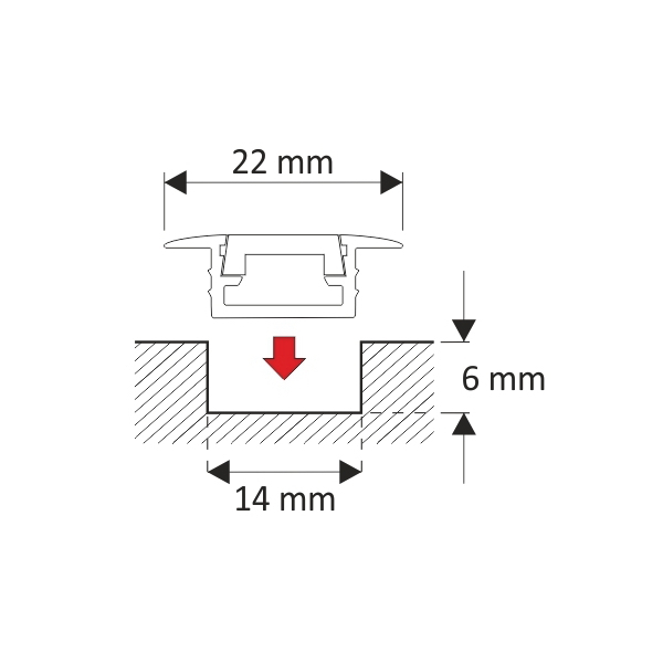 Zafrézovací profil pre LED pás s maximálnou šírkou 10 mm. Profil je vyrobený z kvalitného eloxovaného hliníka a je dlhý 2 metre. Hĺbka montážneho otvoru je 6x14 mm.
