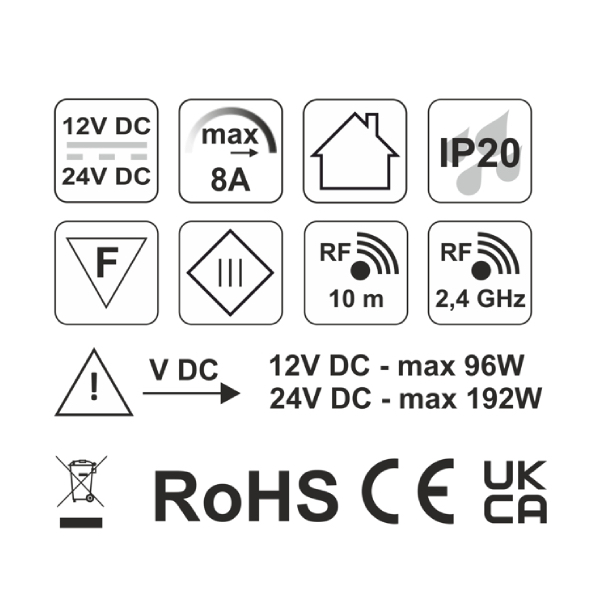 Žiadne káble k vypínaču: Ovládač komunikuje rádiovo (RF) s dosahom až 10 metrov. Ideálne pre kuchyne, obývačky alebo nábytok, kde ste na vypínač nemysleli vopred.