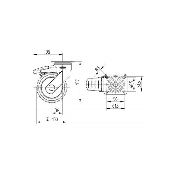 Koliesko LEVINA D100 H137 100kg "Brzda"