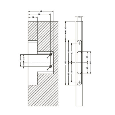 Kovanie závesné CAMAR 821 do hrany pre hrúbku 18mm ľavé