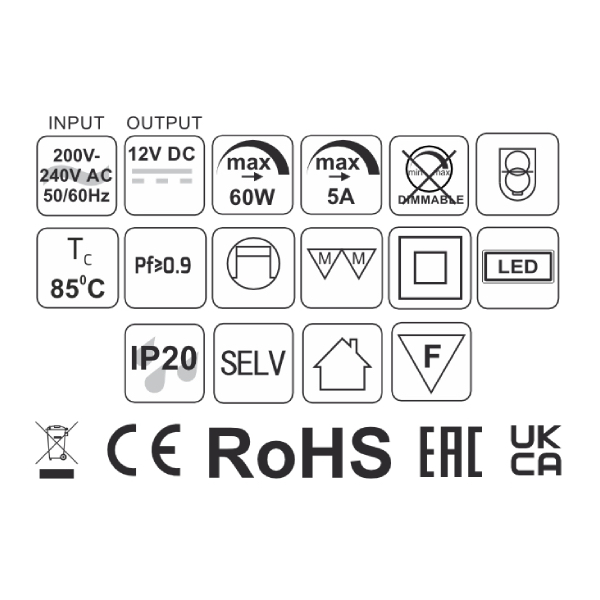 Jeho výkon 60W je dostatočný na napájanie dlhých svetelných línií, napríklad pre kompletné podsvietenie veľkej kuchynskej linky (vrátane soklov), vstavaných skríň alebo dekoratívnych podhľadov v obývačkách, bez nutnosti použitia viacerých slabších zdrojov.