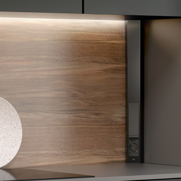 Vďaka teleskopickému prvku a posuvnému mechanizmu je možné ju jednoducho prispôsobiť rôznym typom kuchýň – s hornými skrinkami aj bez nich.