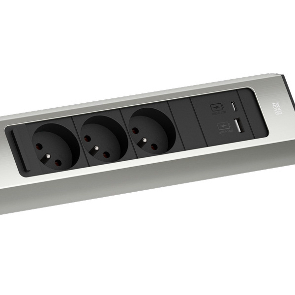 V elegantnom nerezovom prevedení kombinuje funkčnosť a dizajn – ponúka tri sieťové zásuvky a integrovanú USB A & C nabíjačku s výkonom 22 W.