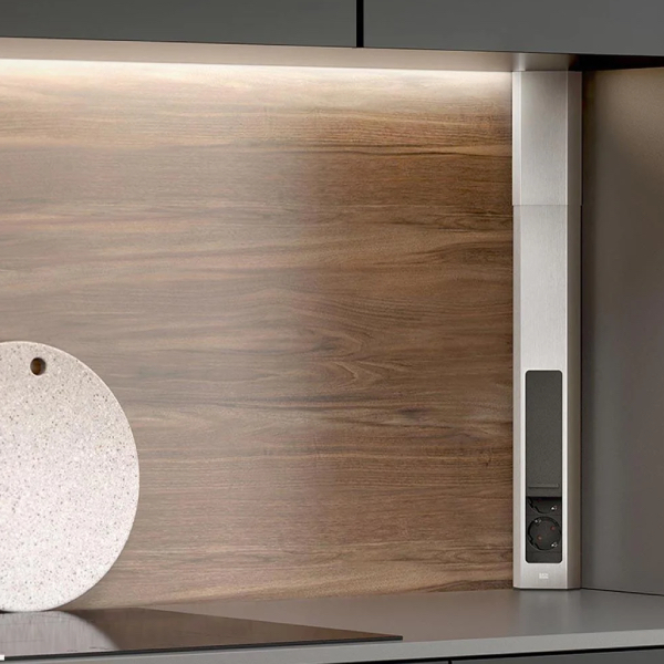 Model Bachmann CASIA 2 – 932.007 je moderná rohová zásuvková lišta určená pre montáž do kuchynských rohov a výklenkov.