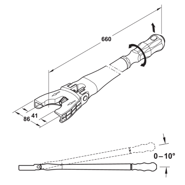 Použitie: pre ergonomické a časovo úsporné výškové nastavenie systémom pre rektifikáciu u sokla AXILO™ v celej oblasti sokla, takisto pre rohové skrinky.