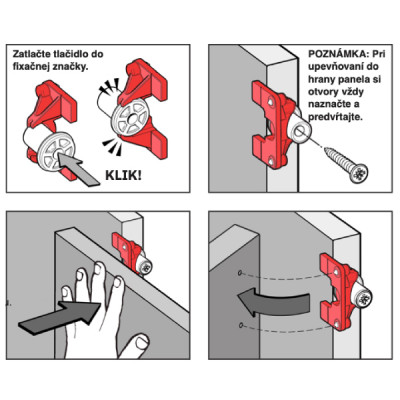 Zatlačte: Priložte panel k stene/konštrukcii do požadovanej polohy a pevne zatlačte.