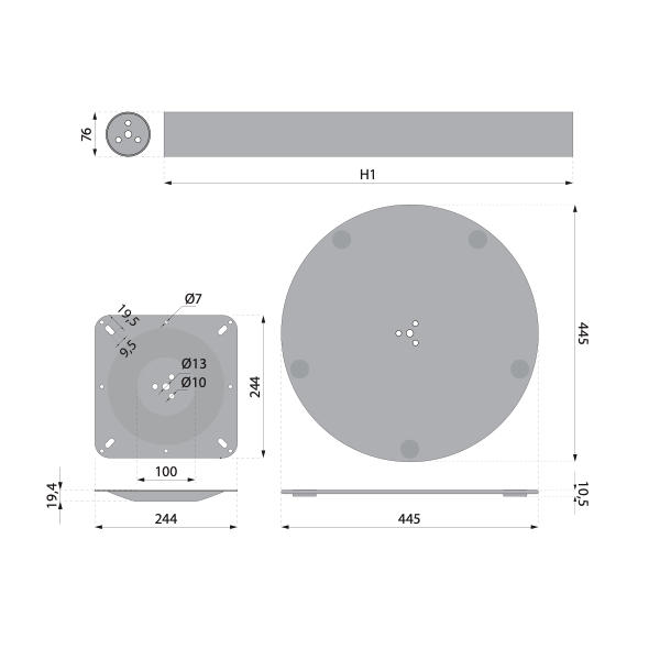 Noha centrálna DN-451 H730 nerez