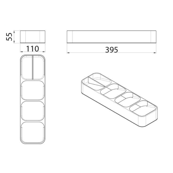 Vyrobený je z odolného plastu v elegantnej popolavej farbe, ktorá sa hodí do každej modernej kuchyne. Vďaka premyslene navrhnutým priehradkám má každý predmet svoje miesto, čo zaručuje pohodlné používanie a maximálne využitie priestoru v zásuvke.