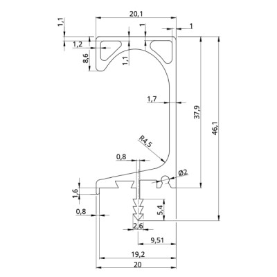 Úchytka PROFIL do hrany 3m "C" UM-932 hliník (UKW-7)